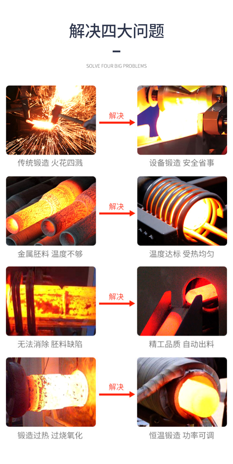 圓鋼鍛造爐別名叫中頻鍛造爐、鍛造加熱爐、感應(yīng)加熱爐、中頻電爐、棒料加熱爐等。功率從250KW、350KW、400KW、500KW、650KW、800KW、1000KW等。
